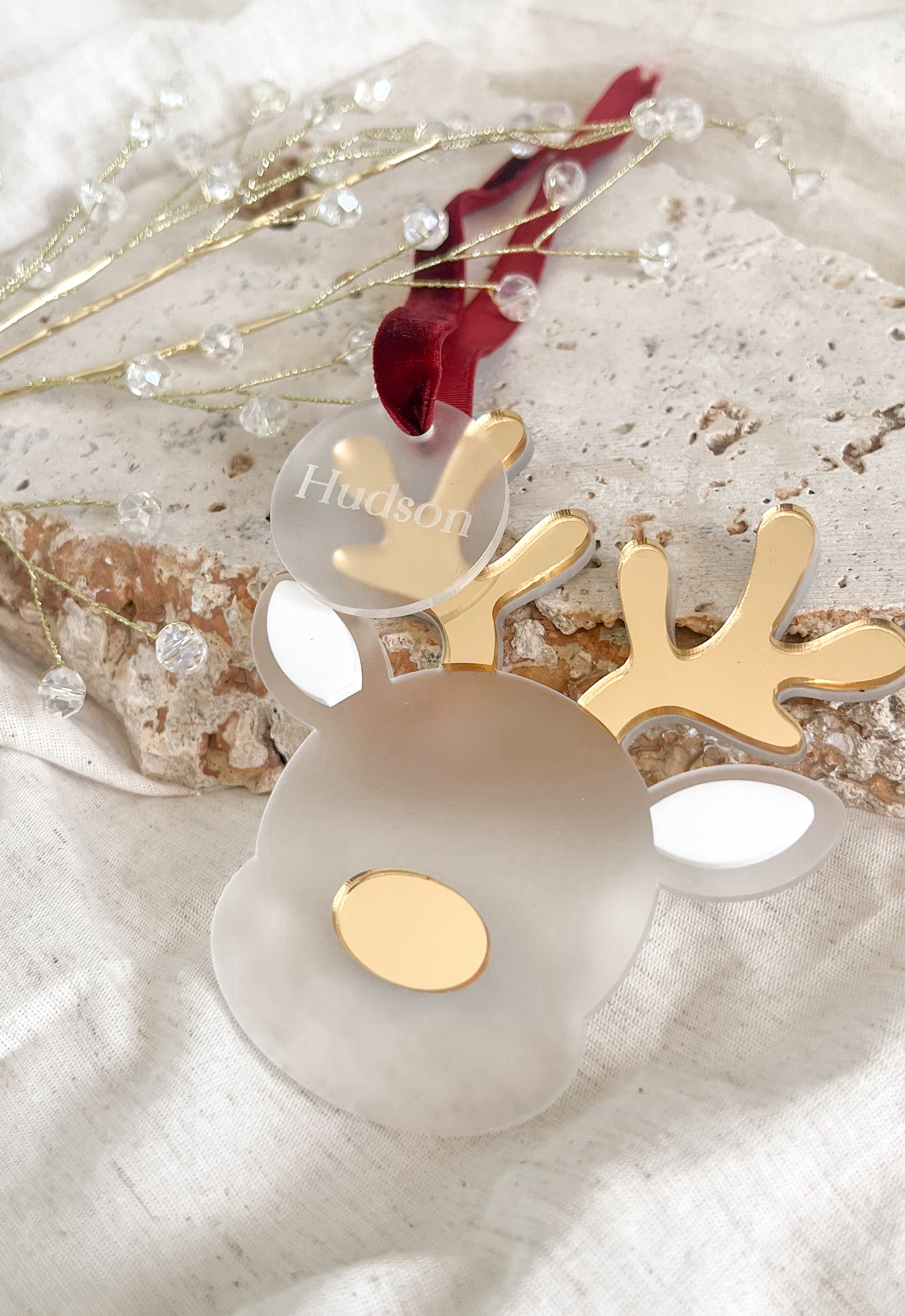Each ornament is custom-engraved with your chosen name on a frosted acrylic tag, creating a special keepsake that’s perfect for children, family members, or loved ones.
