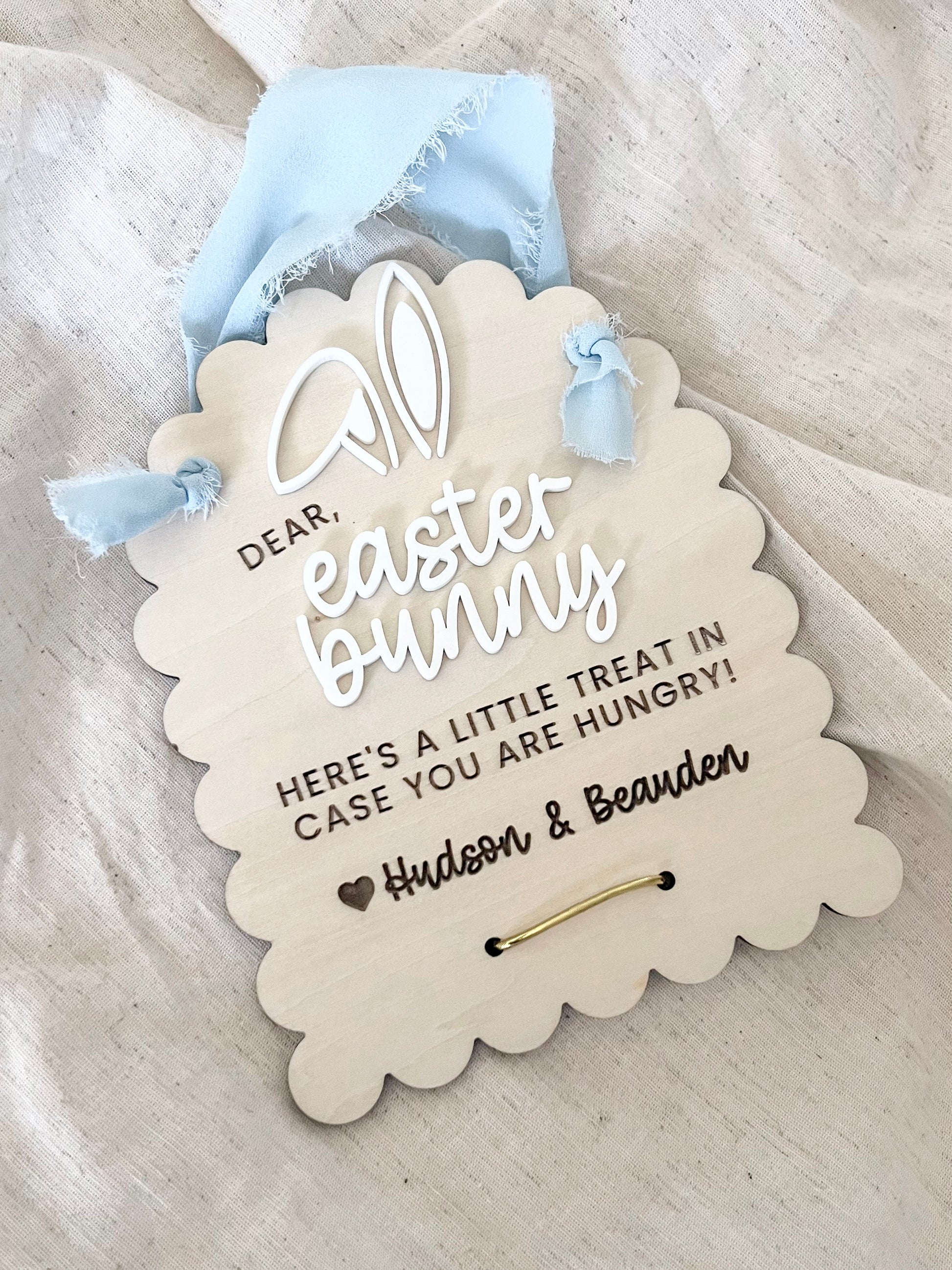 Our hanging board is designed to hang over a bed, or over a door handle it features an elastic loop to hold a carrot for the Easter Bunny.